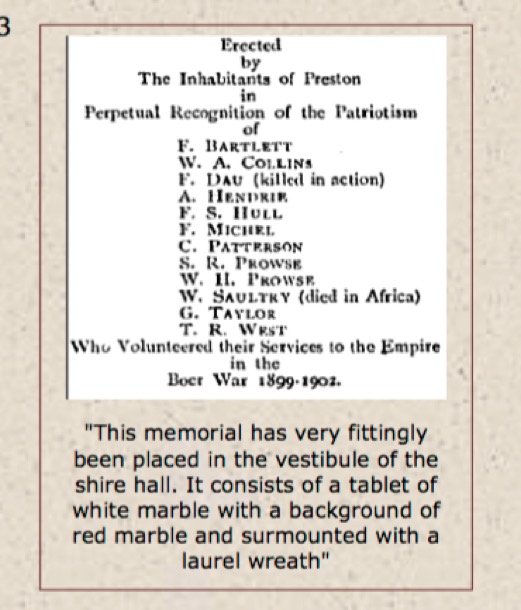 Britain had colonised the southern part of South Africa eighty years earlier and had had an uneasy relationship with the other colonisers of this area, the Dutch Boers, who had been there for a hundred and fifty years longer. Tensions had escalated to war in 1899, and the British Empire was required to send troops to participate.