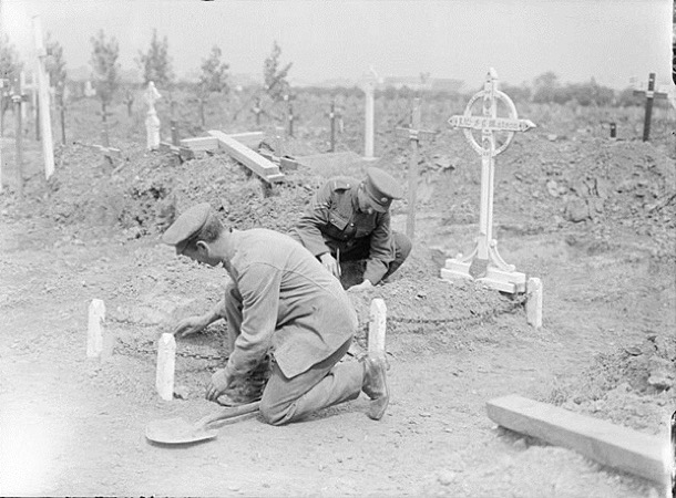 From the very first battles in the early weeks of the fighting on The Western Front, the number of military dead was already in the tens of thousands. Graves and burial grounds situated in the area of a battlefront were often damaged by subsequent fighting across the same location, resulting in the loss of the original marked graves.