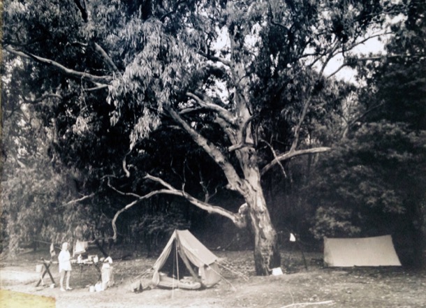 That summer, after Christmas, we travelled up the Hume again, this time in Rikki’s little Volkswagen, “Greymouse”. Fred had spent his childhood living in Walwa, just over the NSW border, where his parents both worked at the Butter Factory. Family friends owned a farm that backed onto the Murray River near Corryong. Fred had spent childhood holidays exploring the river and knew of an island, reachable by car for most of the way, through the farm tracks. We lugged all our camping gear through the bush, waded over the river and set up on the island. I remember heat and flies, but also ants. We had a bush table on which the camp stove sat. Cooking required a tarp, on the ground in front of the table, wetted with river water, to keep the tiny ants from swarming up one’s legs.