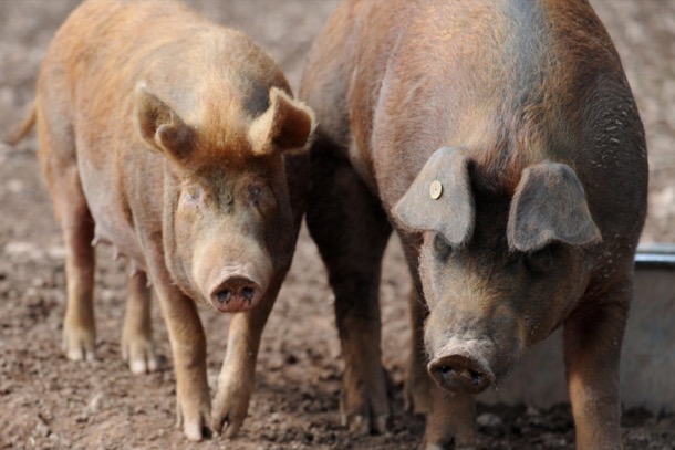 We’re not sure exactly how many pigs there were, but there were about four pens, where the sows and piglets were. Possibly they were only kept in those pens when they had their piglets, and roamed in the paddock the rest of the time.