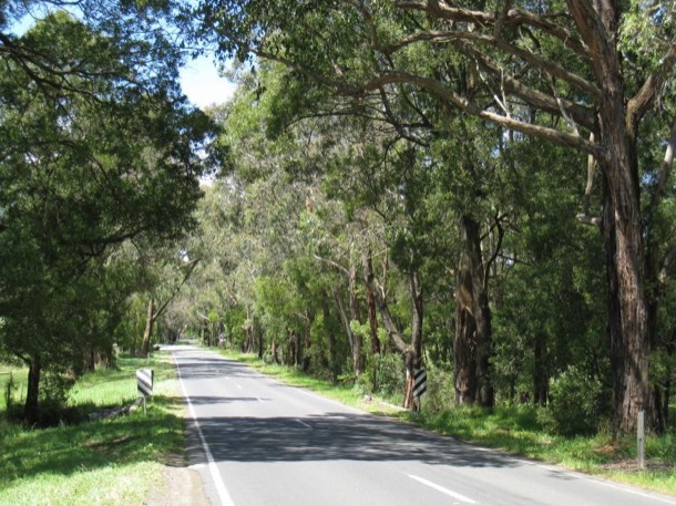 It then wound its way to Upper Ferntree Gully, then a small town at the base of the Dandenongs. Our route through the Dandenongs always took us through Belgrave, Selby and Menzies Creek to Emerald. From here there were several options but the routes we took are hazy. The only clear memory for both of us is of a very lovely narrow, undulating, dirt road through the bush.