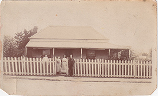 Our grandfather’s parents were Alfred senior, a Methodist parson, and Emma. The church chose his positions and moved the family every three years, in their case throughout country Victoria. They had four children, Florence, Alfred (our grandfather), Alice and Arthur. The photographs below show Allie with her parents and their house in Chiltern.