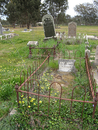Allie’s grave is indeed in the Chiltern Cemetery, still intact. The modest headstone is there surrounded by the typical wrought iron fence of the era. The only flowers are those of the Cape Weed Daisies growing in abundance throughout the cemetery. The inscription is still legible and simply reads: Our Allie October 8th 1906. As I stood there the story suddenly seemed much more real. Allie was no longer the tragic heroine, but a little girl who died an unpleasant death, mourned by her distraught family.