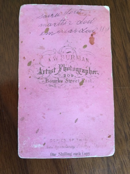 The photographer is listed on the back as Burman, 209 Bourke St Melbourne. The building is still there. This is what it looks like today:
