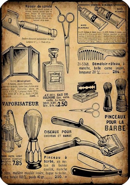 Shaving oneself may have been a financial necessity at times but it could also be a dangerous procedure. Shaving was done with a straight steel razor that required care and expertise, not only in the act of shaving the gentleman, but also in the care of the blade. To keep it sharp, the blade was rubbed against a leather or canvas strap before each new shave. As well as the blade, shaving soap, shaving brushes, combs, oils and wax were essential items to achieve the desired effect.