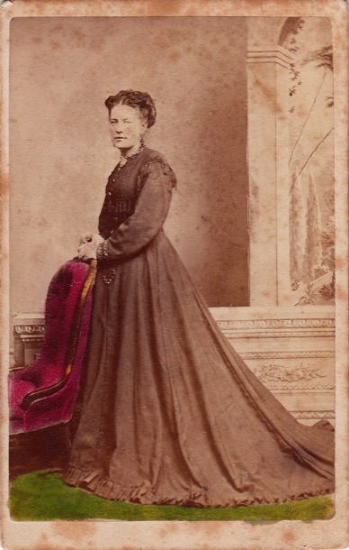 Emma is dressed in the style of the day, hourglass figure no doubt with a corseted waist as she gazes into her future with a determined tilt of her chin. Her hair is tightly curled at the front and pulled back into either a bun or pinned up plait.
