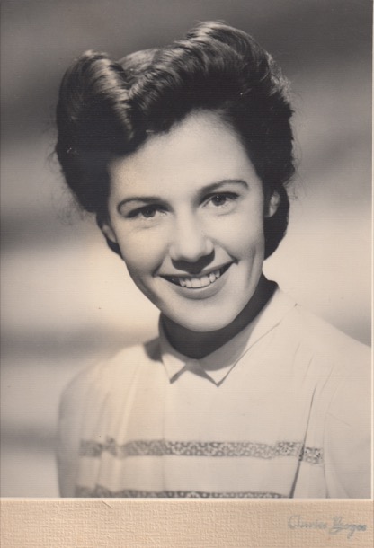 An older Marge, maybe just twenty, posed for this studio photograph as a young woman of the war years, in the “hottest” style of the time. This photograph shows a confident young woman with a job, and presumably many admirers.