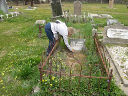 I picked a small bunch of the Cape Weed daisies and placed it front of the headstone.