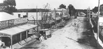 The town that the Coates family found, spread out from the railway station. Businesses and shops were strung out along the long, wide, slightly curving main street. The Dandenong Ranges made a lovely backdrop to the town that was surrounded by small farms, orchards and bushland. Home for the Coates was a small house, painted battleship grey, in Hewish Road, very near the corner of Main Street. This was the wrong side of the tracks. The expensive houses were built over the railway line in Wicklow Avenue, extending up the hill towards what is now Maroondah Highway.
