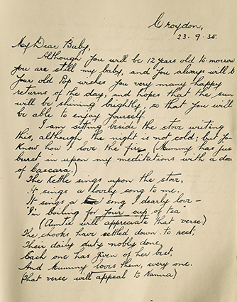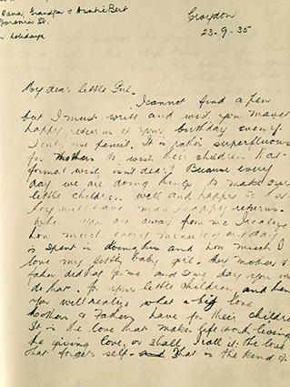 I cannot find a pen but I must write and wish you many happy returns of your birthday even if I only use pencil. It is rather superfluous for mothers to wish their children that formal wish, isn’t it dear? Because every day we are doing things to make our little children well and happy so that they will have many happy returns.