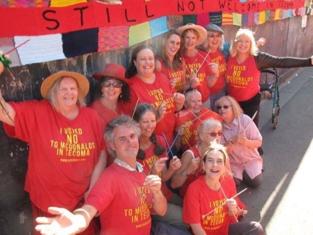Sue and Margaret protesting together at Tecoma