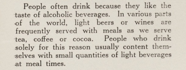It was clearly uncommon for anyone in our narrow anglo world to drink at home. Here, for instance, is an extract from a Primary school resource book on Temperance from the 1950s.
