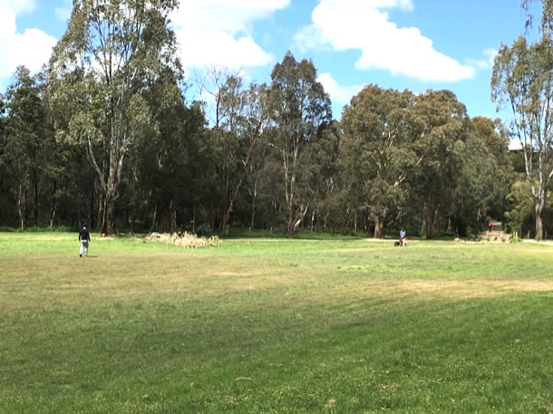 That summer, after Christmas, we travelled up the Hume again, this time in Rikki’s little Volkswagen, “Greymouse”. Fred had spent his childhood living in Walwa, just over the NSW border, where his parents both worked at the Butter Factory. Family friends owned a farm that backed onto the Murray River near Corryong. Fred had spent childhood holidays exploring the river and knew of an island, reachable by car for most of the way, through the farm tracks. We lugged all our camping gear through the bush, waded over the river and set up on the island. I remember heat and flies, but also ants. We had a bush table on which the camp stove sat. Cooking required a tarp, on the ground in front of the table, wetted with river water, to keep the tiny ants from swarming up one’s legs.